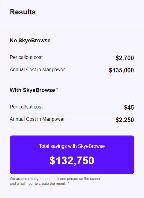 Now with SkyeBrowse, the process would cost under $100. The entire accident can be documented and cleared in 30 minutes with just 1-2 people.